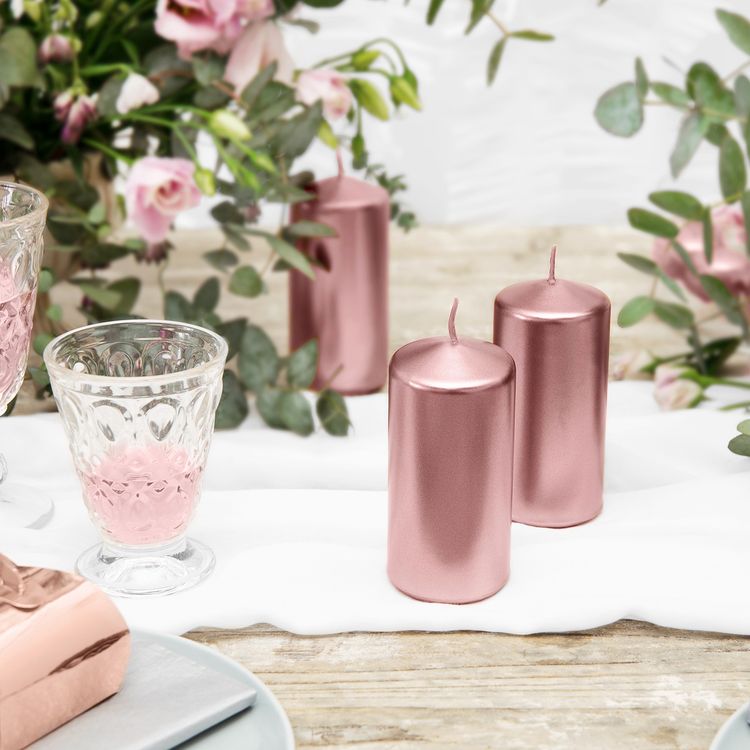Kerze 12 x 6 cm Stumpenkerze 6 Stück Rosé Gold Weihnachten Hochzeit
