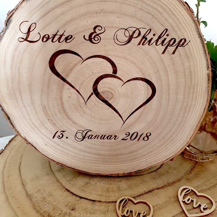 Mit dieser personalisierten Baumscheibe schenken Sie nicht nur ein Stück Natur, sondern auch ein Stück Herz. Perfekt für alle, die ihre Liebe auf eine ganz besondere Weise feiern und festhalten möchten. Bestellen Sie jetzt und machen Sie Ihre schönsten Erinnerungen unvergesslich!