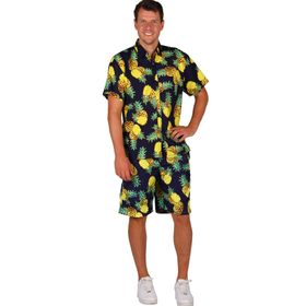 Bereit für das fruchtigste Abenteuer deines Sommers? Mit diesem Hawaii Outfit für Herren ziehst du garantiert alle Blicke auf dich – egal ob am Strand, auf der Grillparty oder beim Fasching! Das 2-teilige Set besteht aus kurzärmligem Hemd und passender Shorts, beide im knalligen Ananas-Design. Saftig, spritzig, tropisch – mehr Sommer geht nicht!