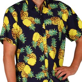 Stylisches Hawaiihemd für Herren: Sommer-Hemd mit Ananas-Print. Ideal für den Sommerurlaub, Grillabend mit Freunden, Beachparty oder einen lässigen Tag im Büro! Hemd mit Kent-Kragenform und Knopfleiste. Vorder- und Rückseite mit Ananas-Motiv bedruckt. Herrenhemd mit kurzen Ärmeln und angenehmen Tragekomfort, regulärer Schnitt. Hawaii-Hemd aus 80% Polyester und 20% Baumwolle.