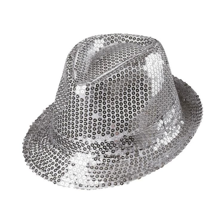 Lieferung: 1-tlg. silberfarbener Pailletten-Hut