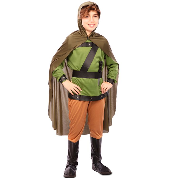 Das Kostüm besteht aus fünf Teilen und bietet alles, was ein echter Robin Hood braucht: ein grünes Oberteil im klassischen Waldläufer-Design, eine bequeme, braune Hose mit integrierten, schwarzen Stiefelstulpen, einen coolen Kapuzenumhang für den mystischen Look, einen authentischen Gürtel und ein Paar Armbänder, die das Outfit perfekt abrunden.