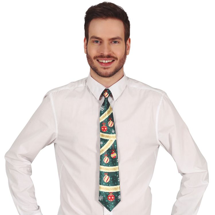 Krawatte & Hosenträger Weihnachten Tannengrün mit Weihnachtskugeln für Herren