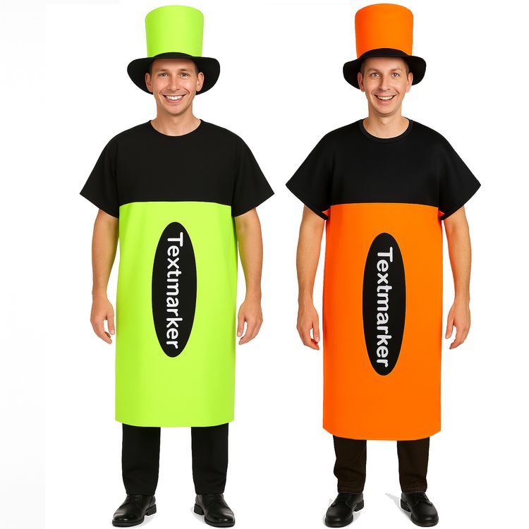 Mit diesem XXL Textmarker Kostüm in leuchtendem Neon-Orange setzt du garantiert ein dickes Ausrufezeichen! Ob beim Karneval, der nächsten Mottoparty oder im Büro – äh, Spaß – dieses Outfit macht dich zum absoluten Highlight des Abends.