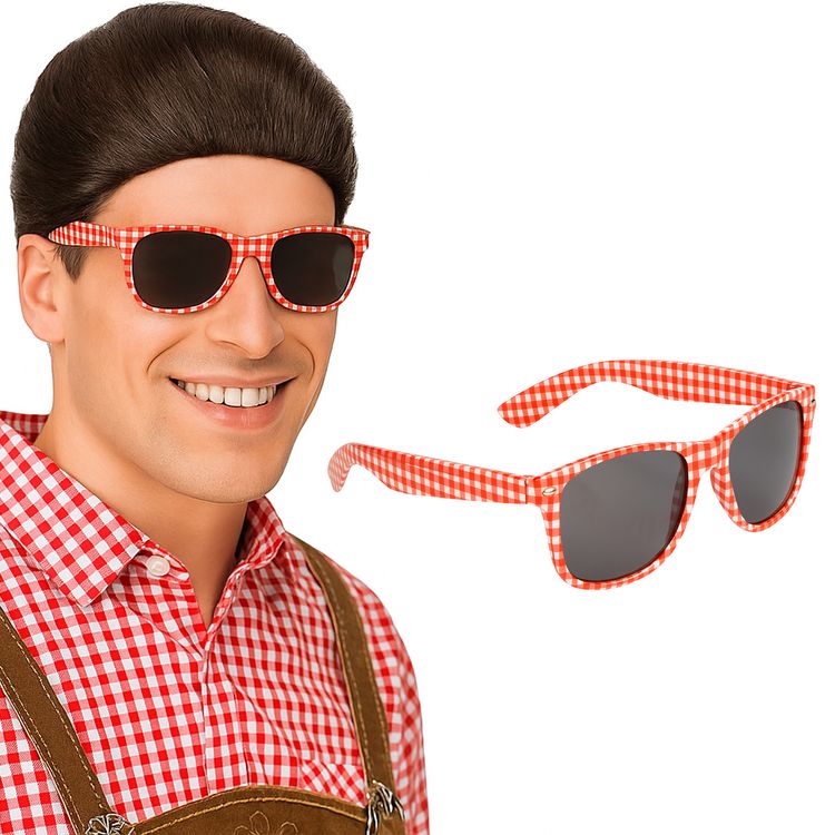 Coole rot-weiß karierte Brille ohne Sehstärke. Passend zu Oktoberfest, Volksmusik-Kostümen oder ähnlichen Trachten-Outfits. Die entsprechende Perücke und weitere Accessoires bieten wir ebenfalls in unserem Onlineshop!